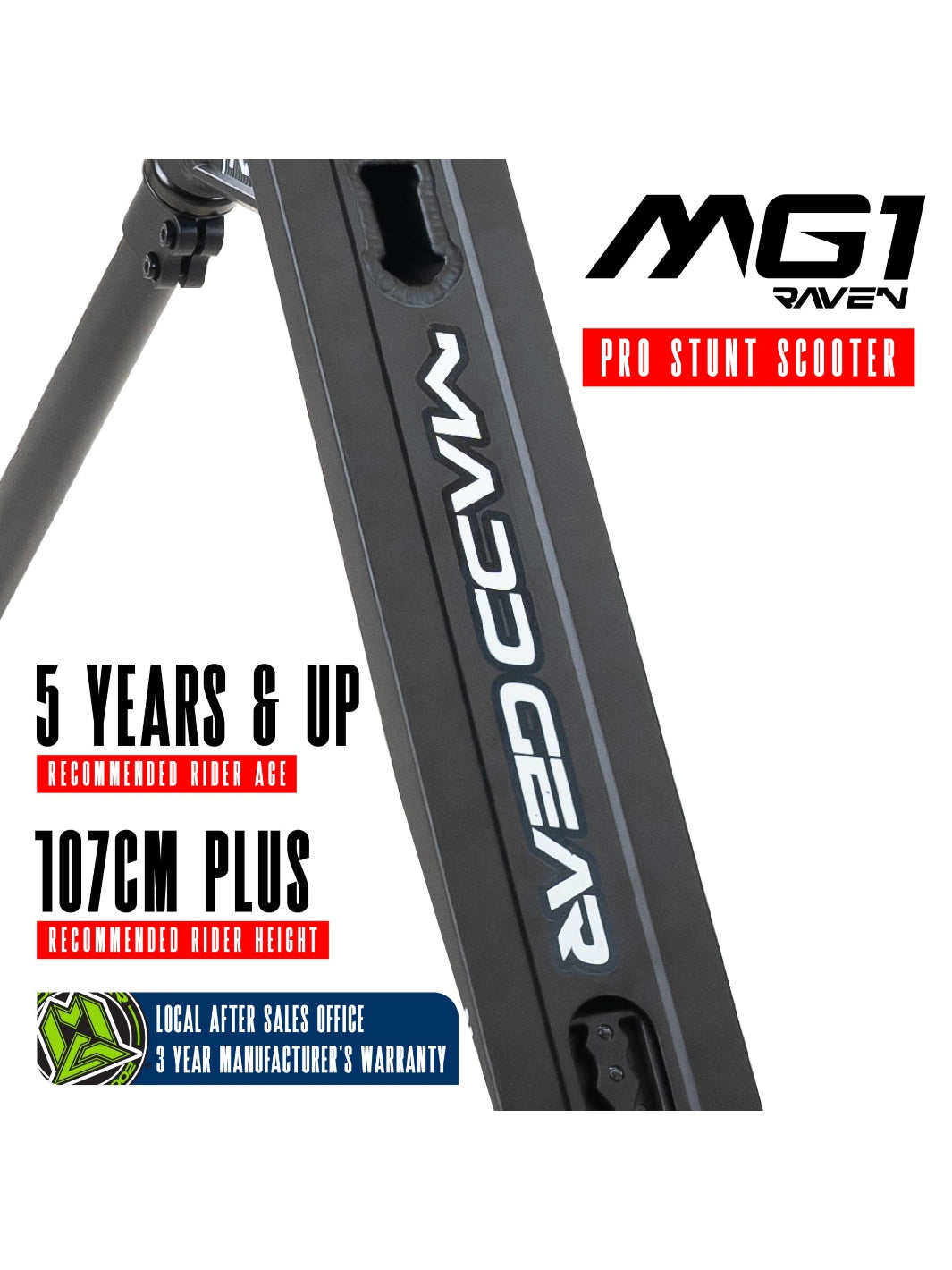The Madd Gear MG1 Raven Pro Scooter is designed to be the ultimate ride for kids 5 years and up who are ready to shred at their local skatepark. Whether you're learning your first tricks or refining your skills, this scooter is built tough to handle everyday stunt riding.