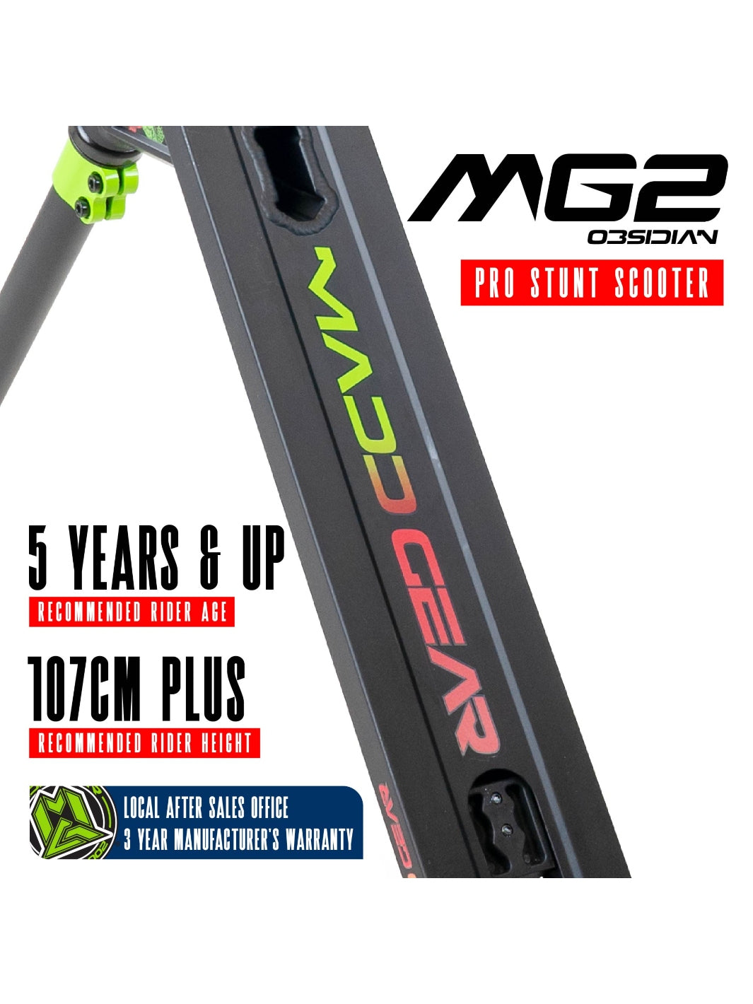 The Madd Gear MG2 Obsidian Pro Scooter is designed to be the ultimate ride for kids 5 years and up who are ready to shred at their local skatepark. Whether you're learning your first tricks or refining your skills, this scooter is built tough to handle everyday stunt riding.