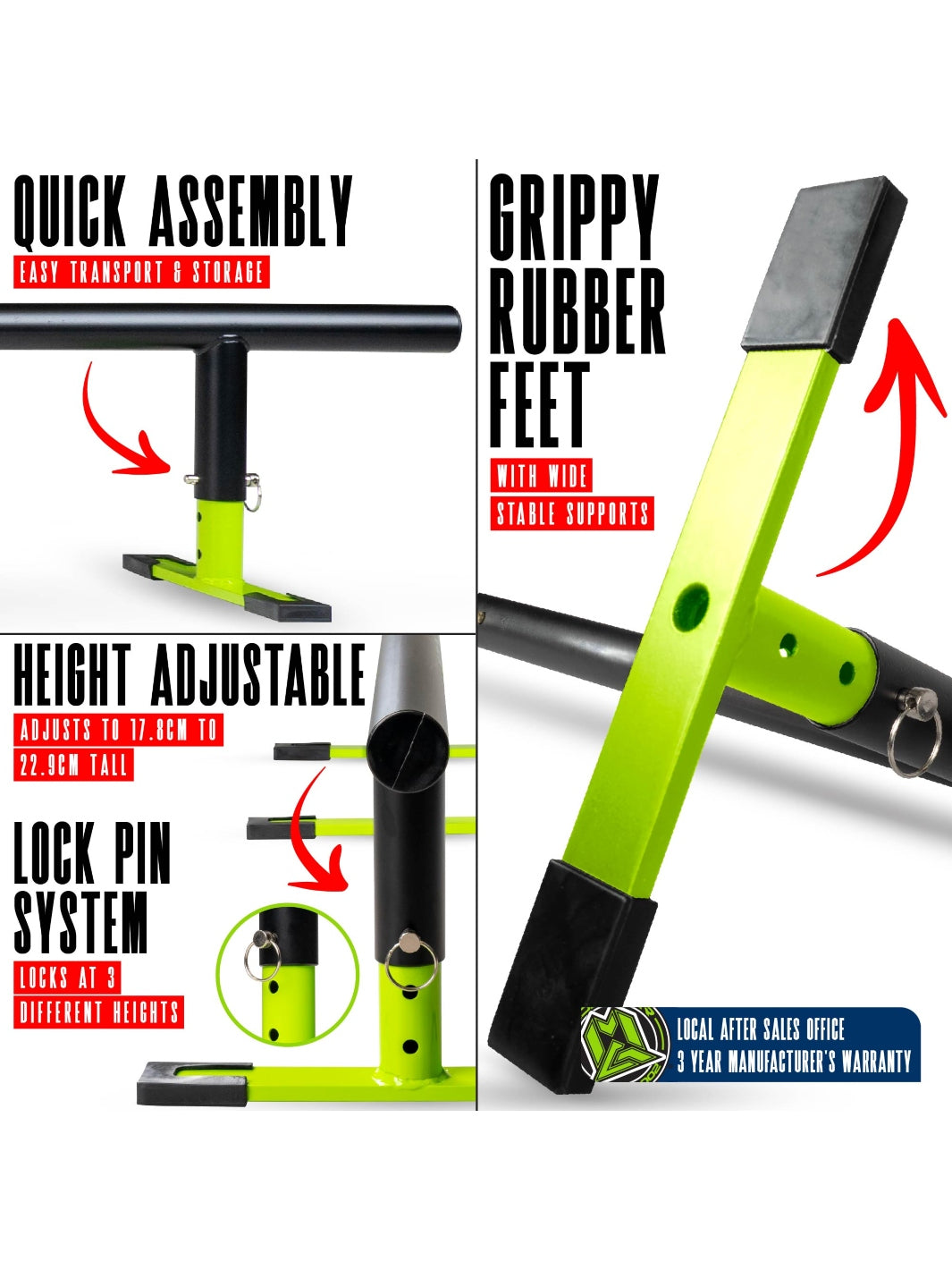 Quote from MGP UK Pro Rider Indy Clayson - "I was really surprised with how well these rails work. It took me about 2 minutes to put them together, anyone could do it. It's so easy to change the height, and they go really low which is great to learn new tricks on. They're super light so they're easy to move around, and despite how light they are, as soon as you get into a grind on them they don't move or wobble at all! They are so fun, I could honestly ride them all day long."