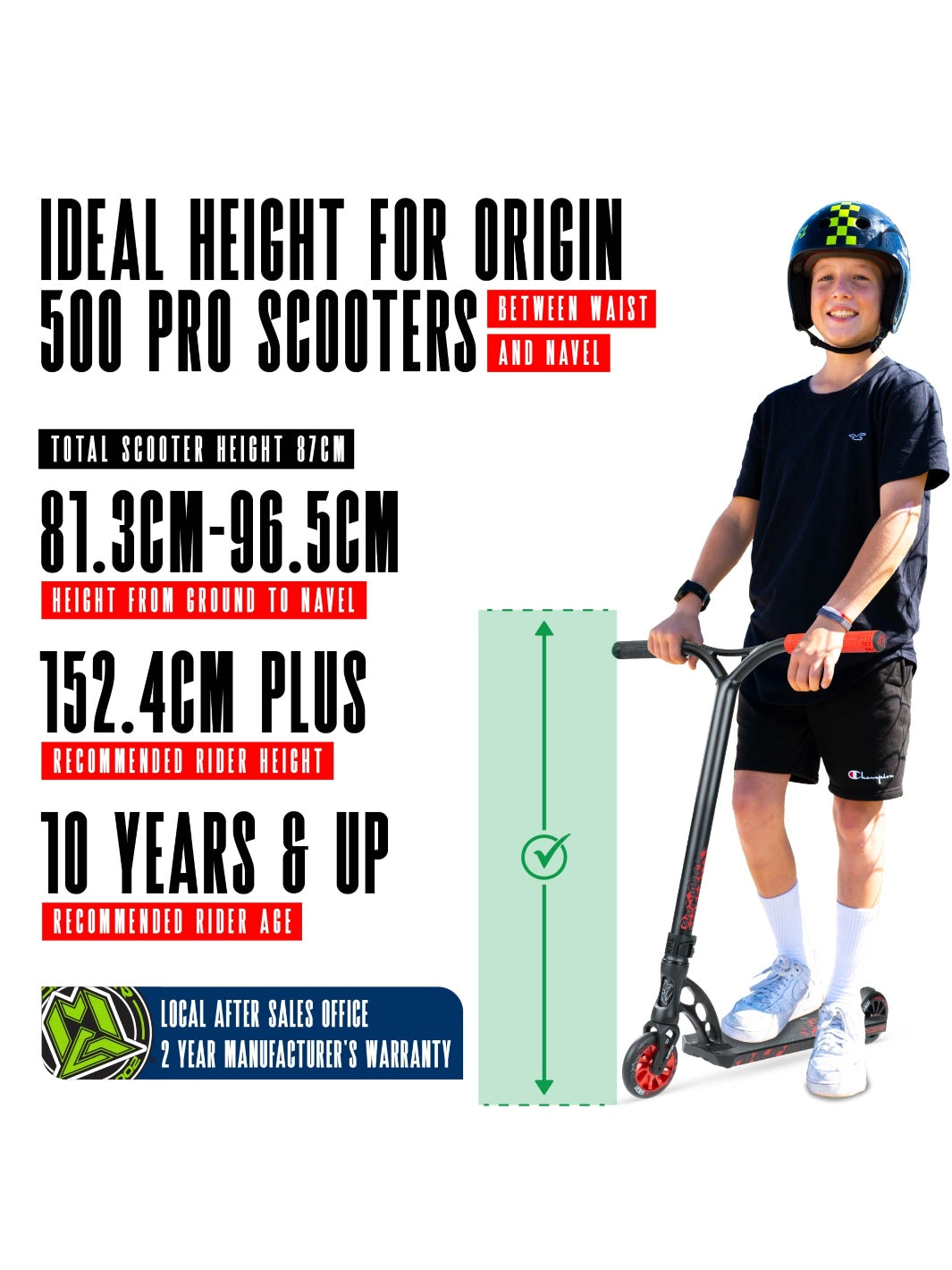 The Origin 500 is a true advanced park scooter, designed for riders 152.4cm+, including teens & taller riders. It offers a strong, balanced setup that’s ideal for technical tricks, transitions, and regular skate park sessions.