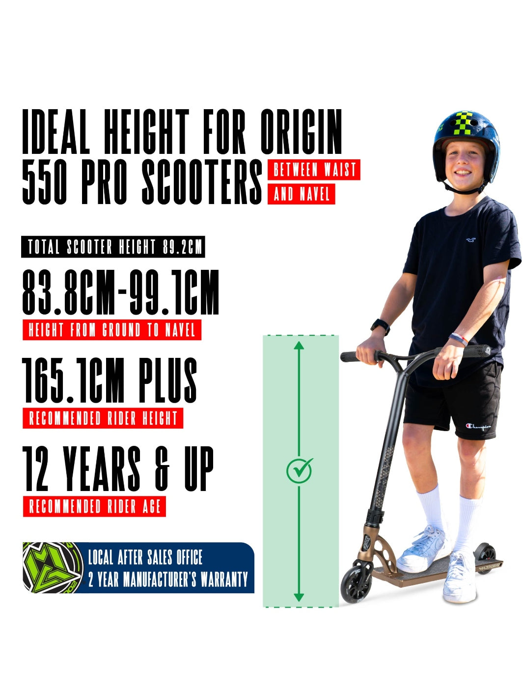 The Origin 550 is a high spec stunt scooter designed for taller riders.