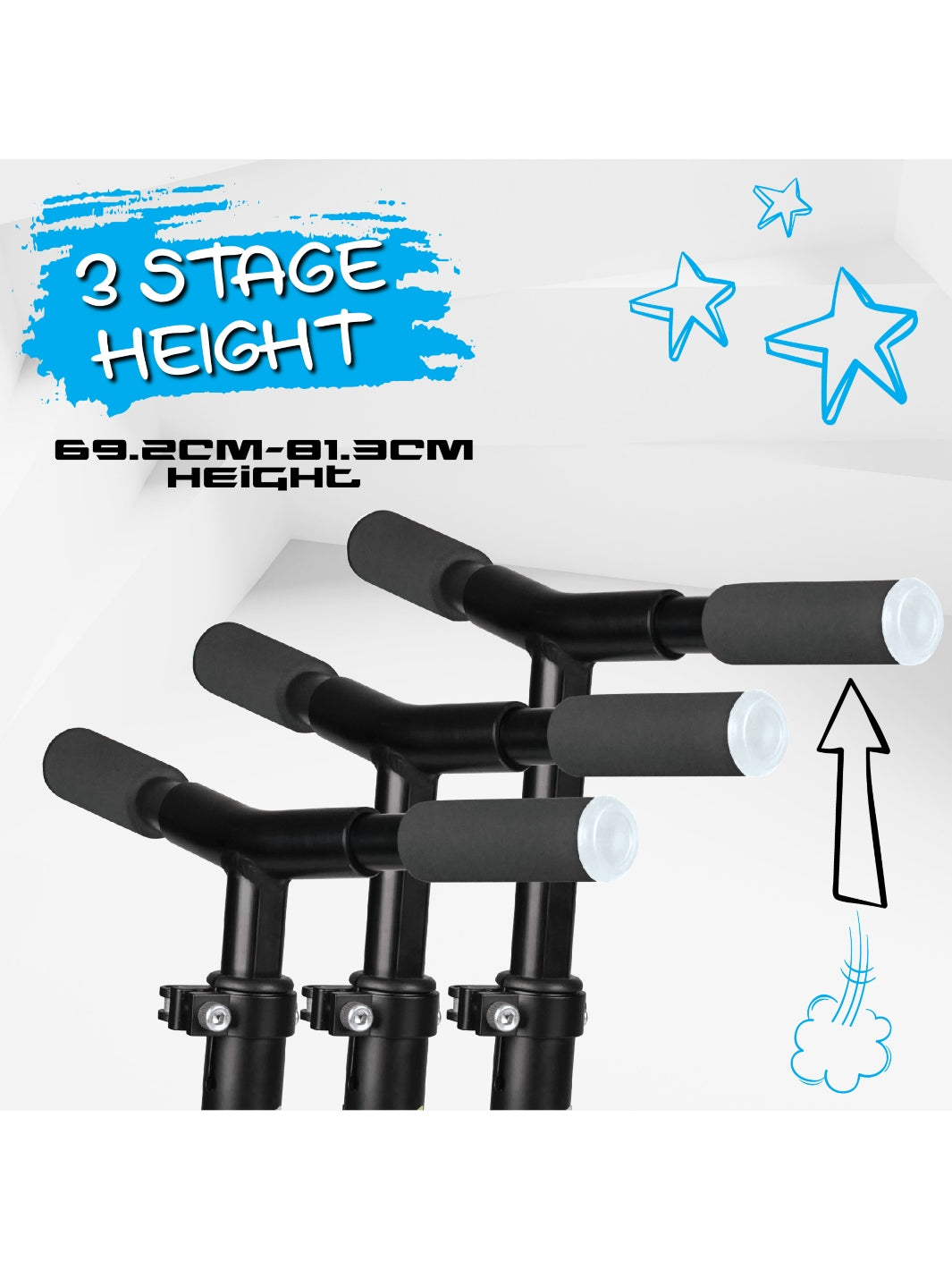 - HANDLEBAR: Easy-Lock 3-Stage Adjustable 27.3-32” Light-Up LED Bar